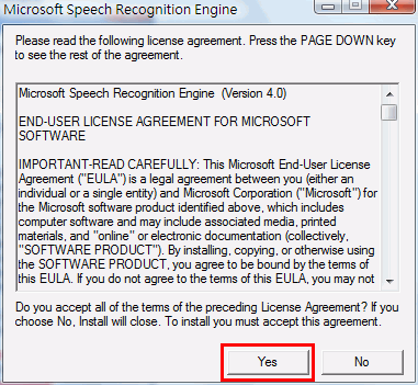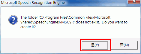 安裝語音辨識系統:請點選【Yes】繼續安裝程序。