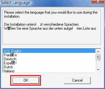 安裝 Shockwave:選擇您的系統所支援的語系版本,請選擇英語「U.S. English」後,點選【OK】。