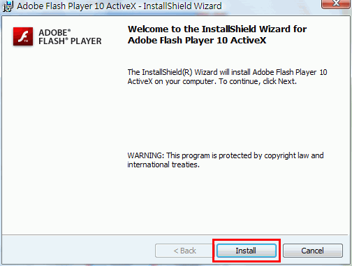 安裝Flash Player ActiveX組件:請點選【Install】進行安裝程序。